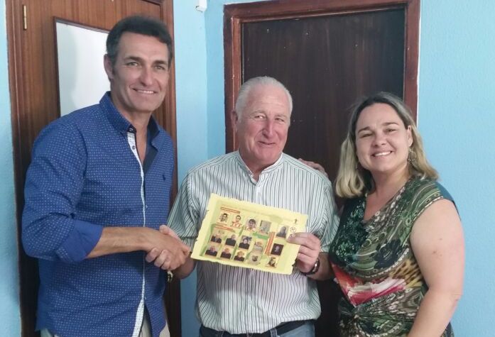 La Línea de La Concepción (Cádiz), 16 de junio de 2016. El Taller de Reminiscencia FEAFV-AFE de la Línea de La Concepción, implementado por la Asociación de veteranos de la Real Balompédica Linense (AVERBAL) y AFA La Línea -en colaboración con el Ayuntamiento de la localidad-, recibió la visita de Adolfo Aldana, ex futbolista gaditano que militó en equipos como el Real Madrid, Deportivo de La Coruña o RCD Espanyol, entre otros.